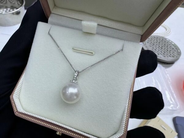The pearl is strung on a delicate yet durable sterling silver chain, allowing the pearl to dangle gracefully around the neck. The necklace is designed to be versatile, suitable for both formal events and everyday wear. It can be worn solo to let the pearl take center stage or layered with other delicate chains for a more intricate look.
