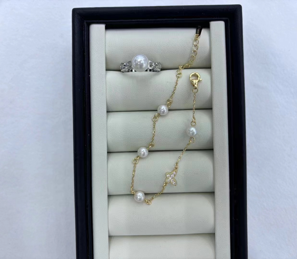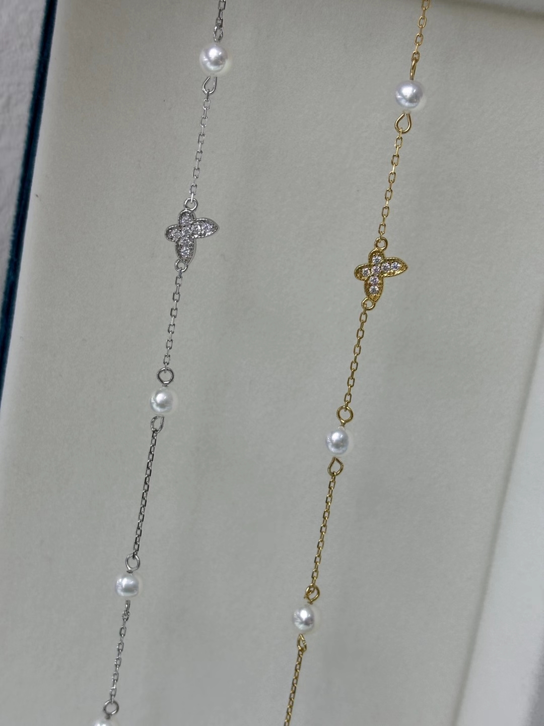 & Free ShippingStars with Butterfly is a delightful piece of jewelry that combines the classic elegance of a pearl with the delicate charm of a butterfly. This necklace features a lustrous pearl nestled within the wings of a beautifully crafted silver butterfly, suspended from a dainty silver chain. It’s a versatile accessory that adds a touch of grace and whimsy to any look.”(Bracelets without the ring)